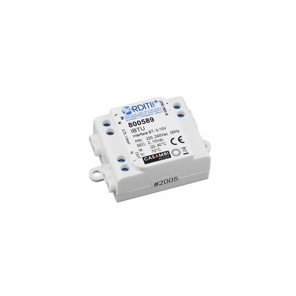 Nejzákladnější a nejpoužívanější modul inteligentního systému Casambi. Modul se po zapojení připojí přes Bluetooth 4.0 do uživatelského rozhraní aplikace Casambi. Aplikace Casambi je zdarma k dispozici na Apple App Store a Google Play Store. Pomocí aplikace můžete pak snadno ovládat svítidla se stmíváním pomocí technologie 0-10V, stmívat je a určit jim nové okruhy. Jedná se o vestavný modul, který je nutné umístit přímo do svítidla nebo jiného krytu.