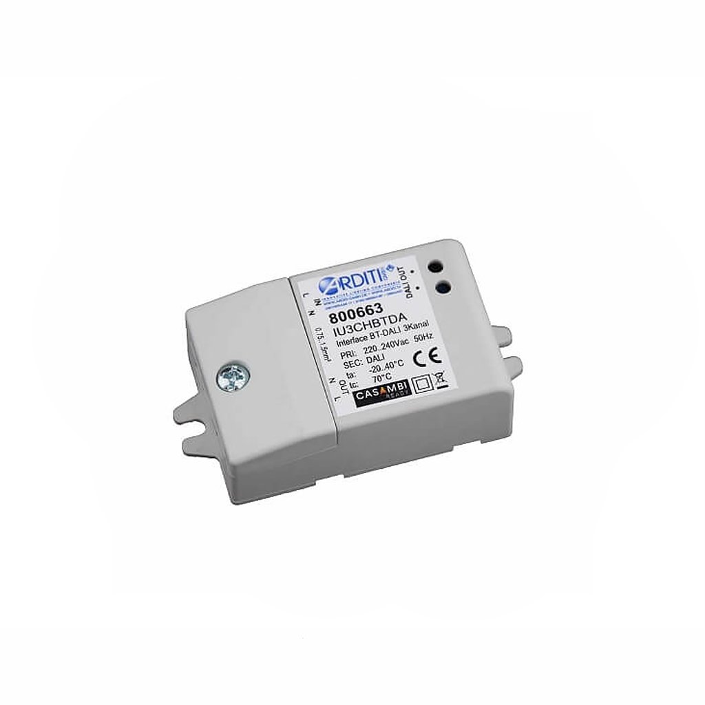 Nejzákladnější a nejpoužívanější modul inteligentního systému Casambi. Modul se po zapojení připojí přes Bluetooth 4.0 do uživatelského rozhraní aplikace Casambi. Aplikace Casambi je zdarma k dispozici na Apple App Store a Google Play Store. Pomocí aplikace můžete pak snadno ovládat svítidla, stmívat je a určit jim nové okruhy. Jedná se o vestavný modul, který má vlastní odlehčení tahu a lze jej instalovat bez dodatečného krytu.