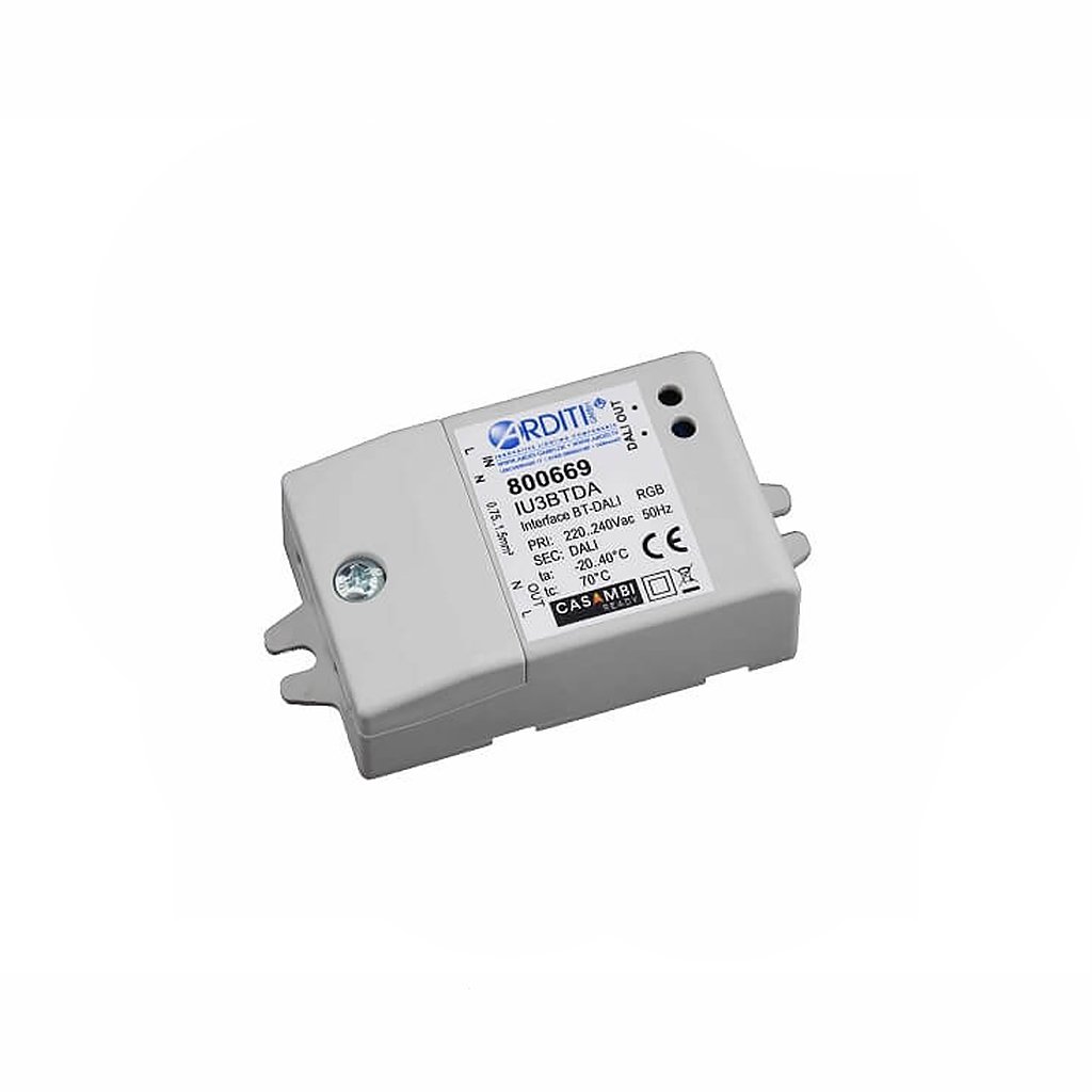 Nejzákladnější a nejpoužívanější modul inteligentního systému Casambi. Modul se po zapojení připojí přes Bluetooth 4.0 do uživatelského rozhraní aplikace Casambi. Aplikace Casambi je zdarma k dispozici na Apple App Store a Google Play Store. Pomocí aplikace můžete pak snadno ovládat svítidla, stmívat je a určit jim nové okruhy. Jedná se o vestavný modul, který má vlastní odlehčení tahu a lze jej instalovat bez dodatečného krytu.