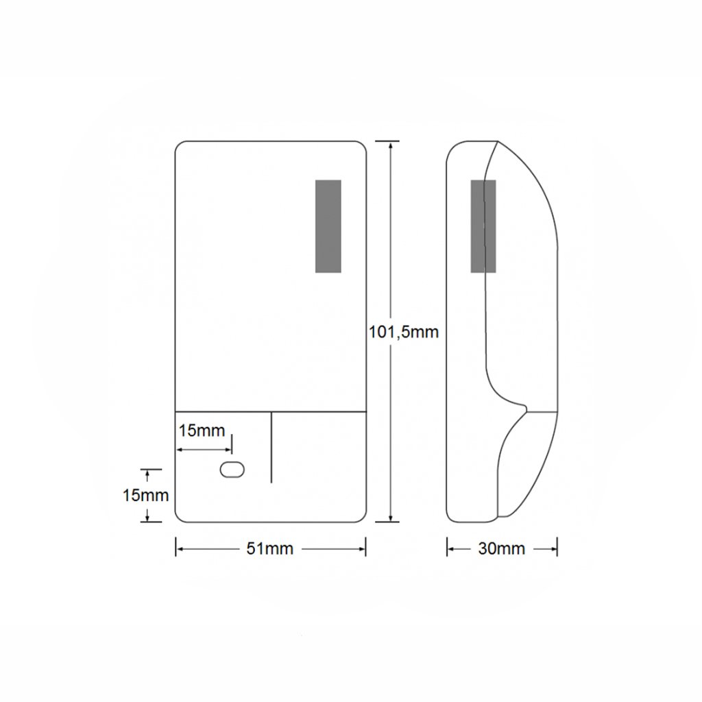 Součástí je integrovaná anténa (šedá oblast na výkresu), kterou nezakrývejte kovovým krytem.