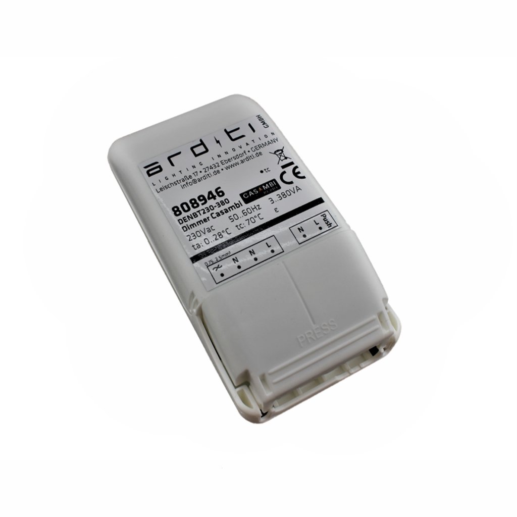 Modul z produktové řady systému inteligentního ovládání osvětlení Casambi určený k fázovému stmívání svítidel a ke spínání svítidel ON/OFF. Modul má také rozhraní pro připojení tlačítka určeného k ovládání libovolných svítidel v síti Casambi. S tímto modulem je možné ovládat fázově stmívatelná svítidla nebo žárovky na jednom okruhu se zátěží až 380W.