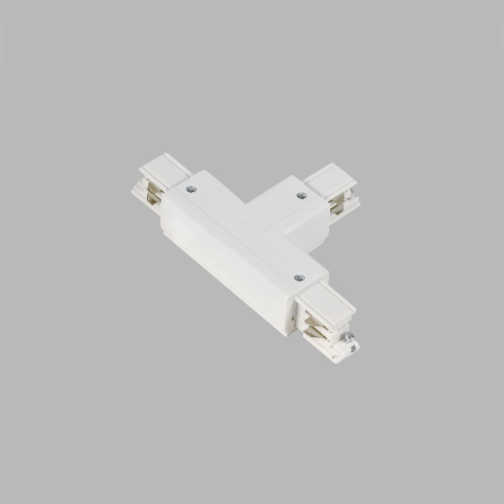 - Levý double spojovací díl ve tvaru písmene T pro propojení třífázových napájecích lišt pro nestmívatelná svítidla.