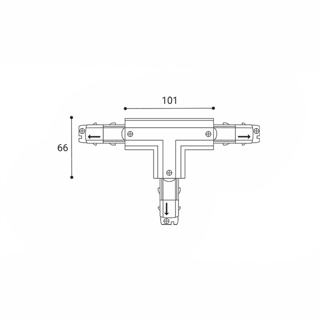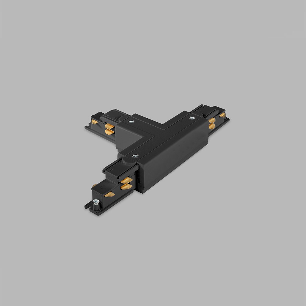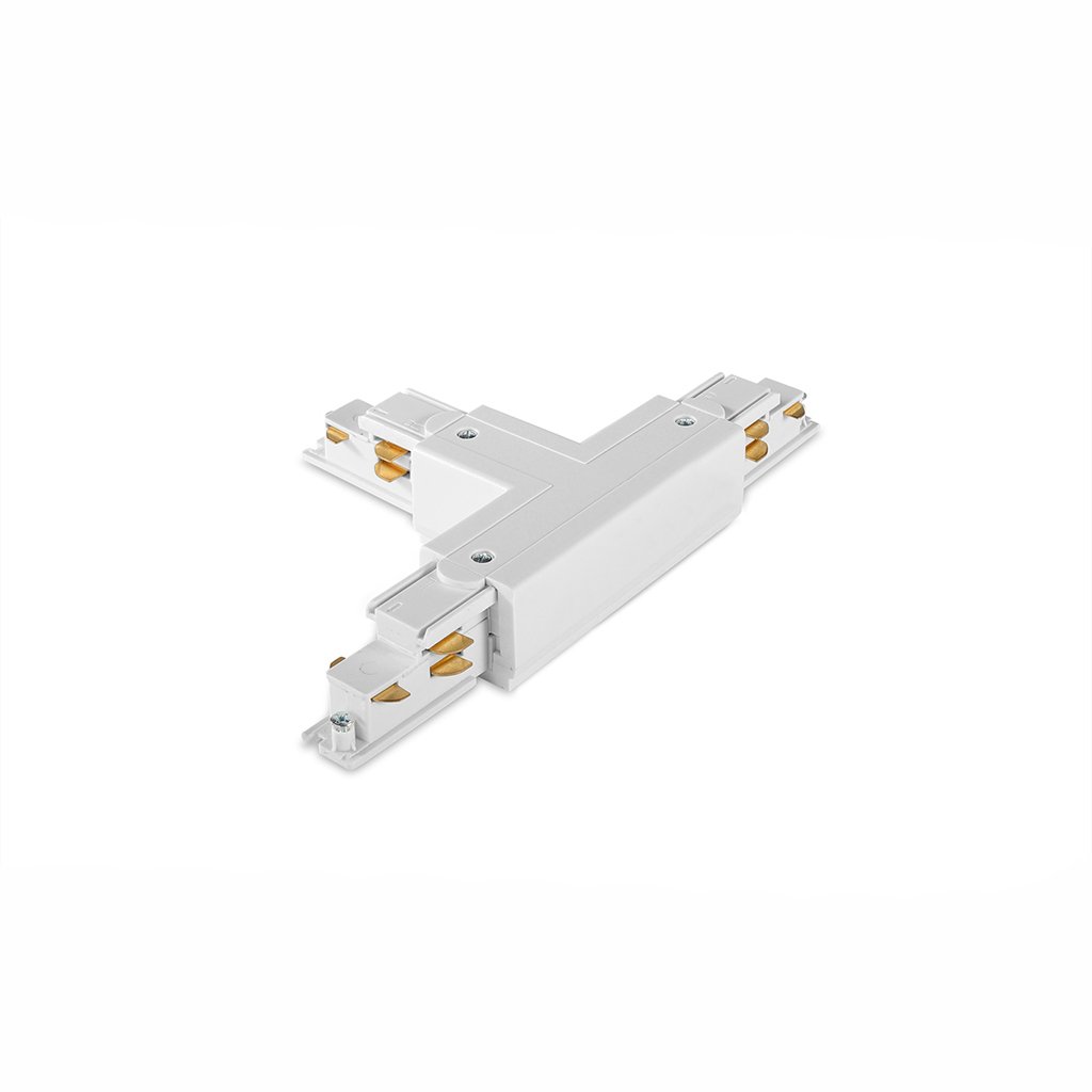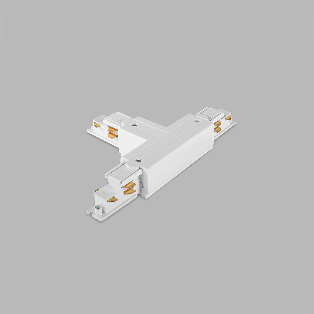 - Pravý double spojovací díl ve tvaru písmene T pro propojení třífázových napájecích lišt pro DALI stmívatelná svítidla.