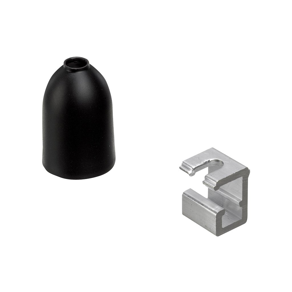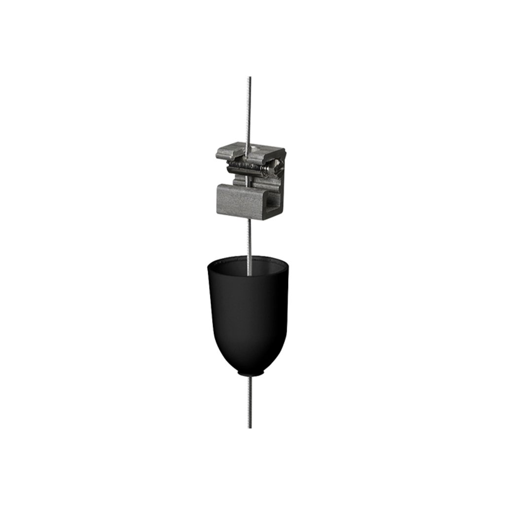 - Stropní kalíšek s úchytem pro lankový závěs pro zavěšení lištového systému. Díky tomuto kalíšku je možné vytvořit závěsný lištový systém pro nasvícení umění, kuchyňských linek či jakéhokoli komerčního interiéru.