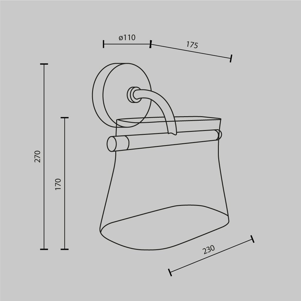Rozměry svítidla jsou 230/175/270 mm. (d/š/v)