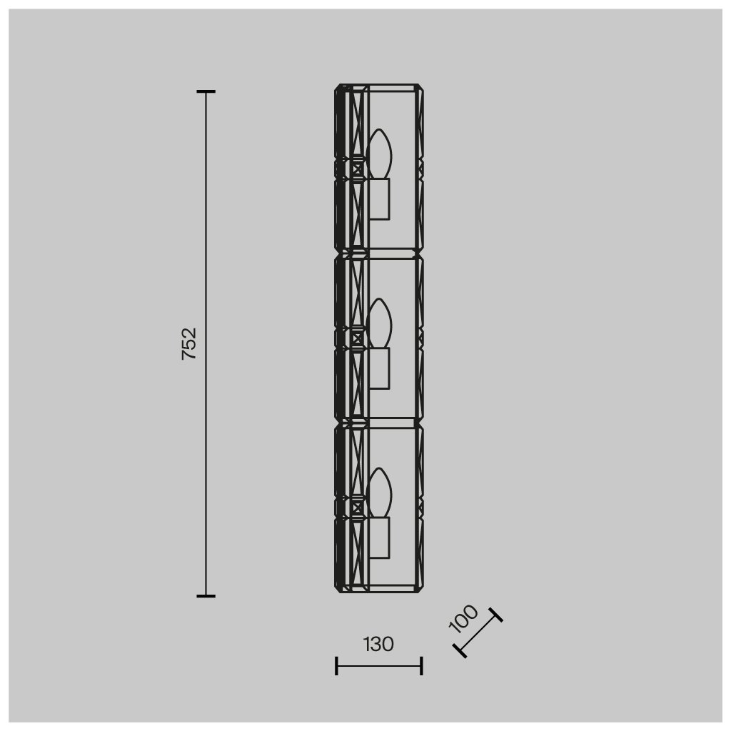 Svítidlo je dostupné ve dvou velikostech - 100/130/250 mm a 100/130/752 mm. (d/š/v)