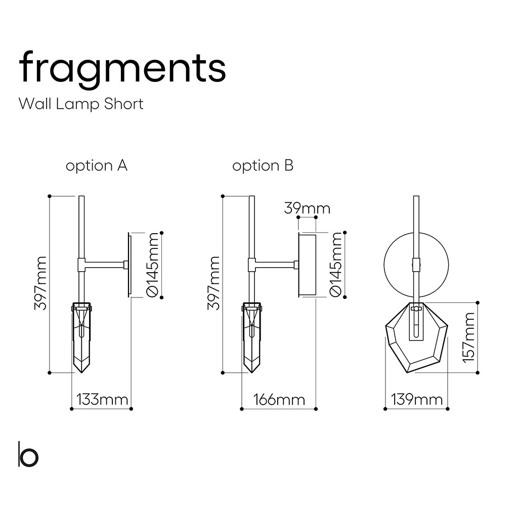 Luxusní nástěnné svítidlo Fragments Short Wall představuje nový pohled na skleněné střepy přetvořené v originální svítící diamanty, které odhalují svou vnitřní krásu. Základem tohoto svítidla je sklo Fragmentglass, což je nový a unikátní materiál, který recykluje skleněné střepy a vdechuje jim nový život. Toto svítidlo ztělesňuje propojení inovací, řemeslné zručnosti, technologií a výrazného designu, které zaujmou v jakémkoli prostoru.