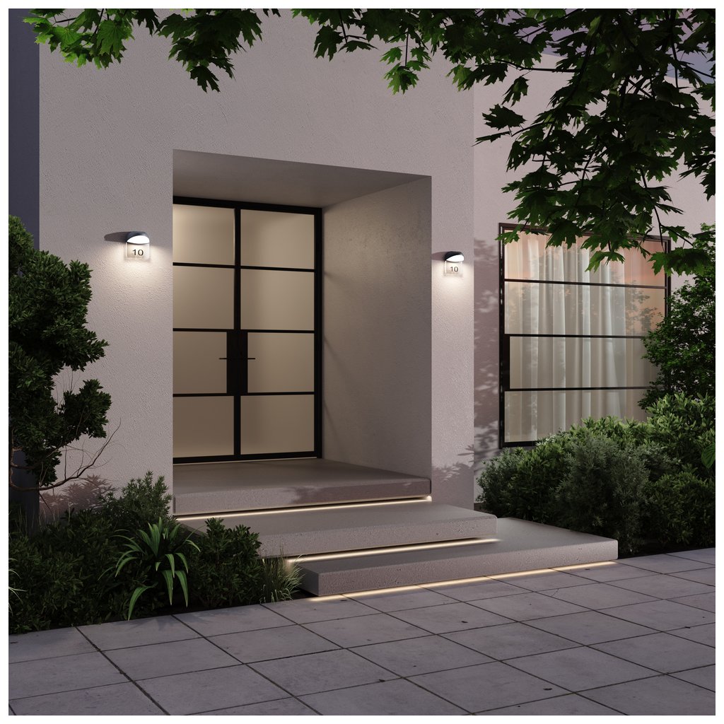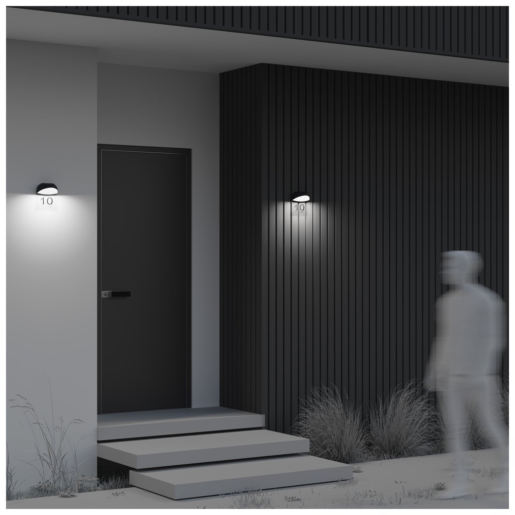 Moderní designové svítidlo Gloss vhodné do mnoha různých venkovních prostorů. Díky minimalistickému nadčasovému designu perfektně zapadne jak do obytných, tak i do komerčních prostorů. Součástí svítidla Gloss je destička z průhledného plastu, na kterou je možné umístit různá čísla a označení, například číslo domu nebo číslo hotelových pokojů. Toto svítidlo se často používá pro osvětlení venkovních koridorů, vstupních dveří, přístřešků, fasád, omítek a teras.