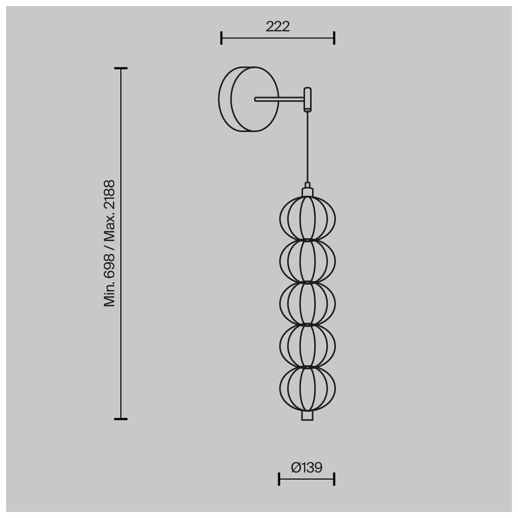 Součástí je válcová nástěnná rozeta v barvě svítidla s rozměry ø110/30 mm a nastavitelný kabelový závěs svítidla s délkou 10-1500 mm.