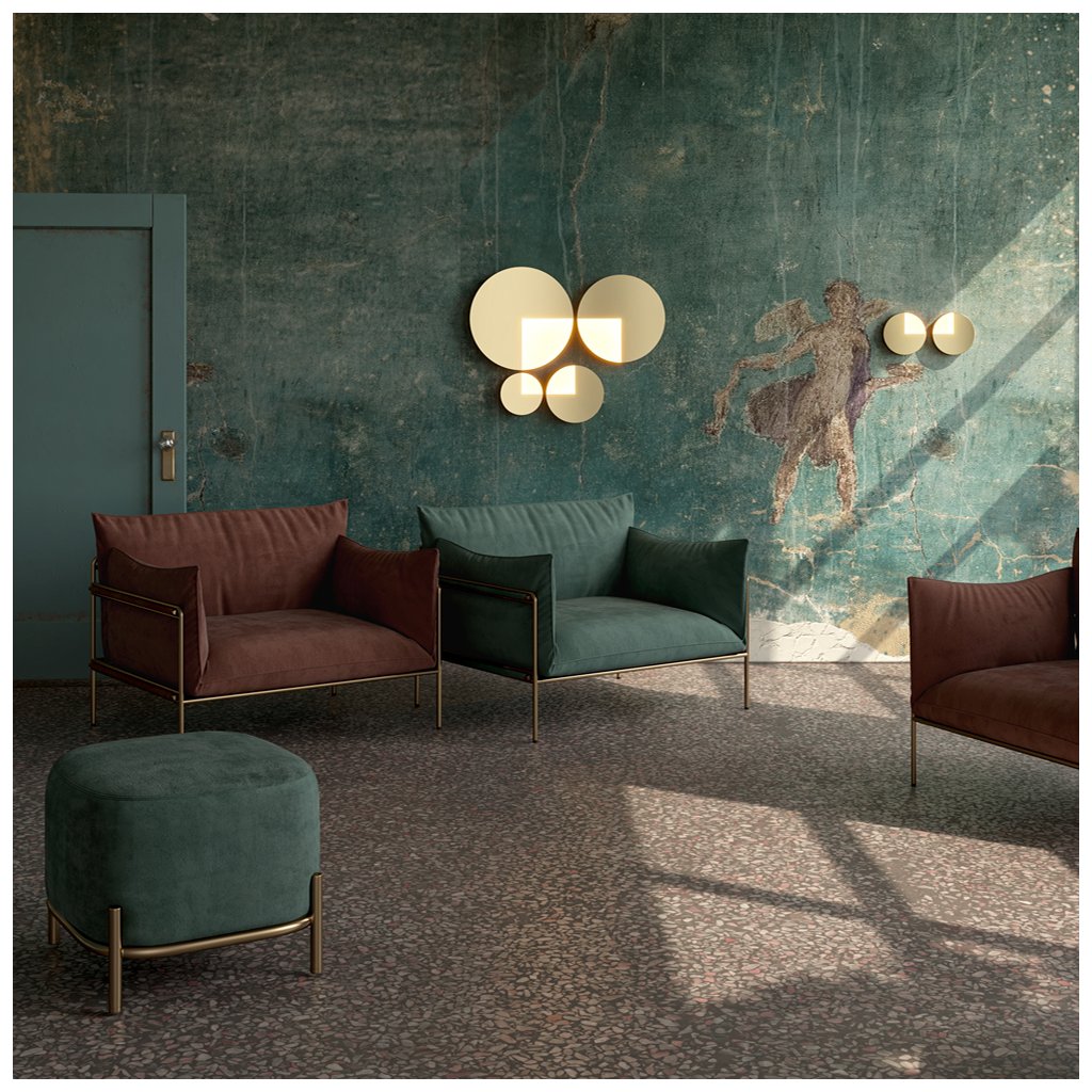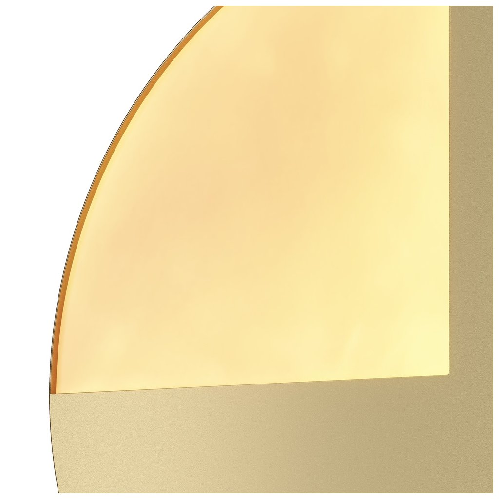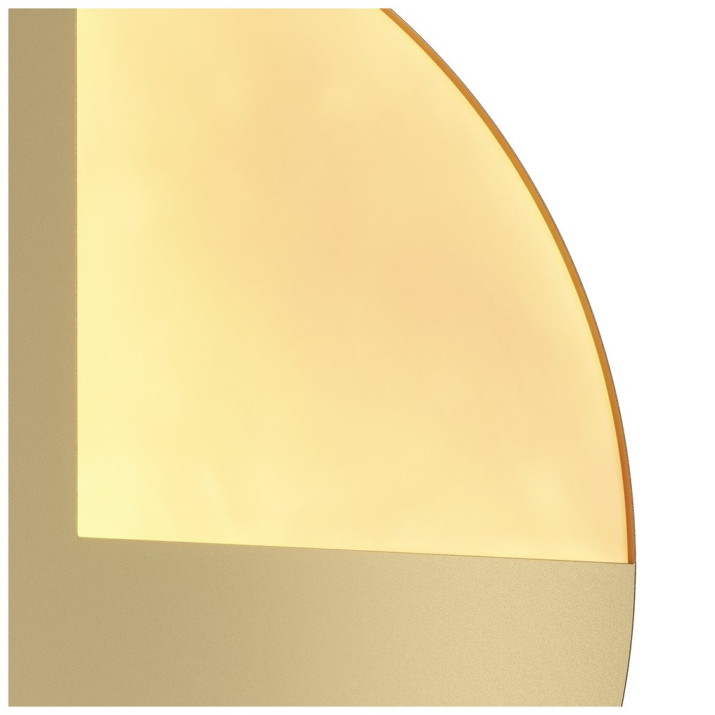 Jemné nástěnné svítidlo Jupiter kombinuje pozlacený hliník a lité čiré sklo. Svítící skleněná výkroj představuje kontrastní prvek, který rozbíjí dokonalou kruhovou siluetu svítidla, ale zároveň umožňuje vytvořit zajímavé a soudržné světelné kompozice v rámci jednoho prostoru.