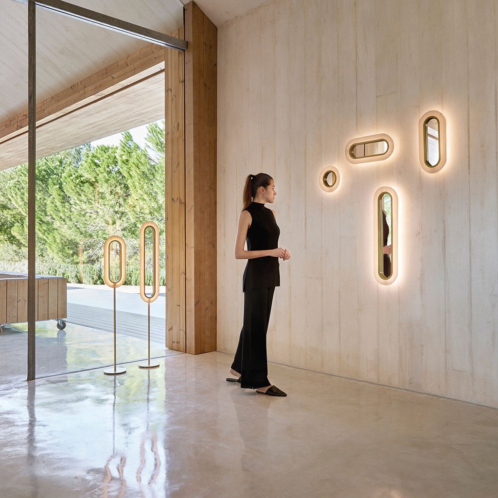 - Světlo, odraz, symetrie - to vystihuje toto nástěnné designové svítidlo se zrcadlovým centrem.