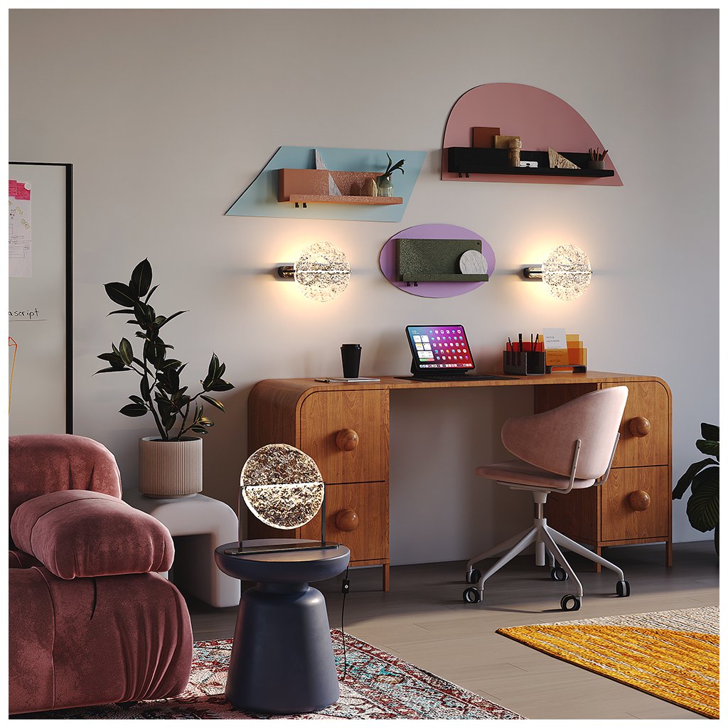 - Slovo mångata ve švédštině znamená „odraz měsíčního svitu na vodě“. Nástěnné svítidlo čerpající inspiraci z tohoto slova samo zachycuje poetickou krásu měsíčního svitu a zvlněné vodní hladiny. Kulaté skleněné stínítko se odráží od zrcadlové základny a vytváří zajímavou iluzi hloubky a nekonečna. Texturovaný skleněný difuzér navíc vrhá měkké, rozptýlené světlo, jako by sám měsíc sestoupil z oblohy, aby naplnil prostor klidem a vyrovnaností.