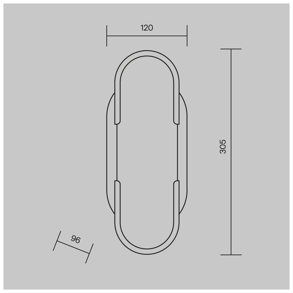 Rozměry svítidla jsou 96/120/305 mm. (d/š/v)