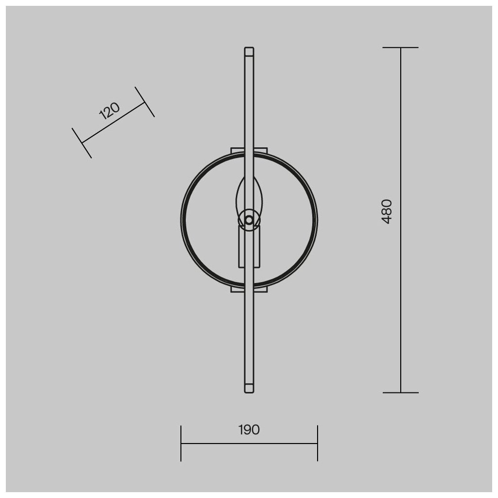 Rozměry svítidla jsou 125/190/480 mm. (d/š/v)