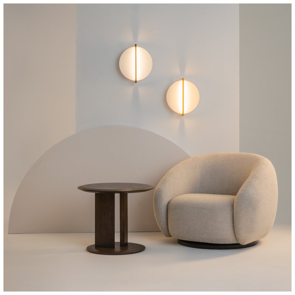 Nástěnné svítidlo s nepřímým svícením na kovový terč Mira vyniká svým nápadným designem. Světlo vyzařuje z tenké vertikální ocelové tyče směrem na zaoblený disk, odkud se pak odráží po celé místnosti. Tím tak vzniká jemné a rozptýlené světlo, které naplní jakoukoli místnost teplem, pohodlím a příjemnou atmosférou.