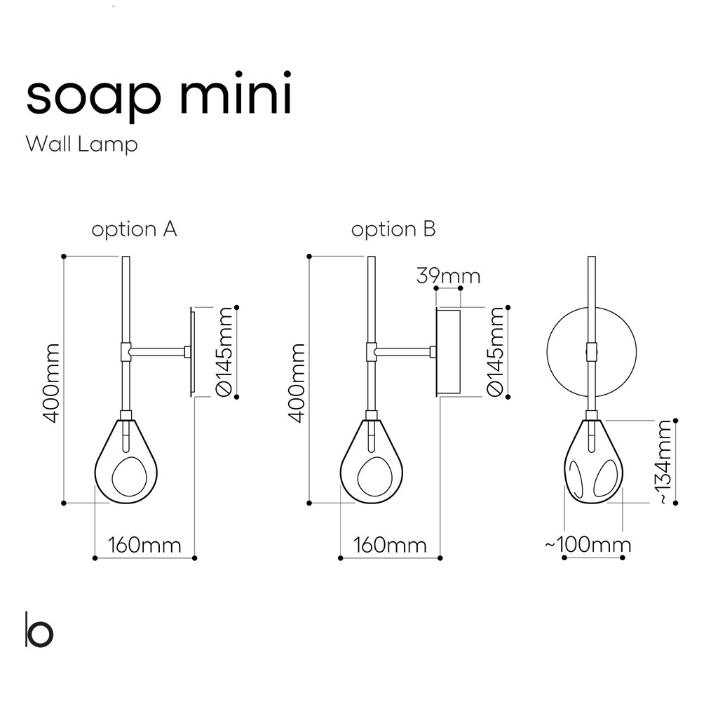 Měňavé barvy, průhlednost a proměnlivost tvarů – právě tyto vlastnosti mýdlových bublin byly předlohou ke vzniku kolekce Soap Mini Wall. Rozsvícením se tato skleněná metalická kapka přemění v poutavý objekt s duhovými odlesky a odhalí tak svůj křišťálový charakter. Tato svítidla jsou vyrobena technikou ručního foukání bez použití formy, kdy je na první pohled dokonalé kapce žhavého skla vtisknut jedinečný tvar i neopakovatelná barevnost.
