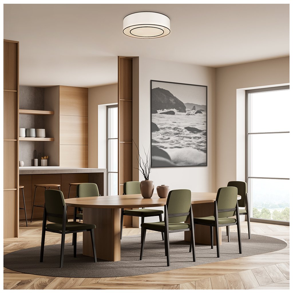 Neutrální, ale zároveň designové válcové přisazené svítidlo Bergamo Ceiling je určeno pro kohokoli, kdo zbožňuje jednoduchý a funkční styl osvětlení. Elegantní kombinace dvou různě barevných stínítek společně s jednoduchou siluetou nahrává tomu, že svítidlo snadno zapadne do jakéhokoli prostoru, a to především nad kulaté jídelní, kancelářské nebo konferenční stoly.