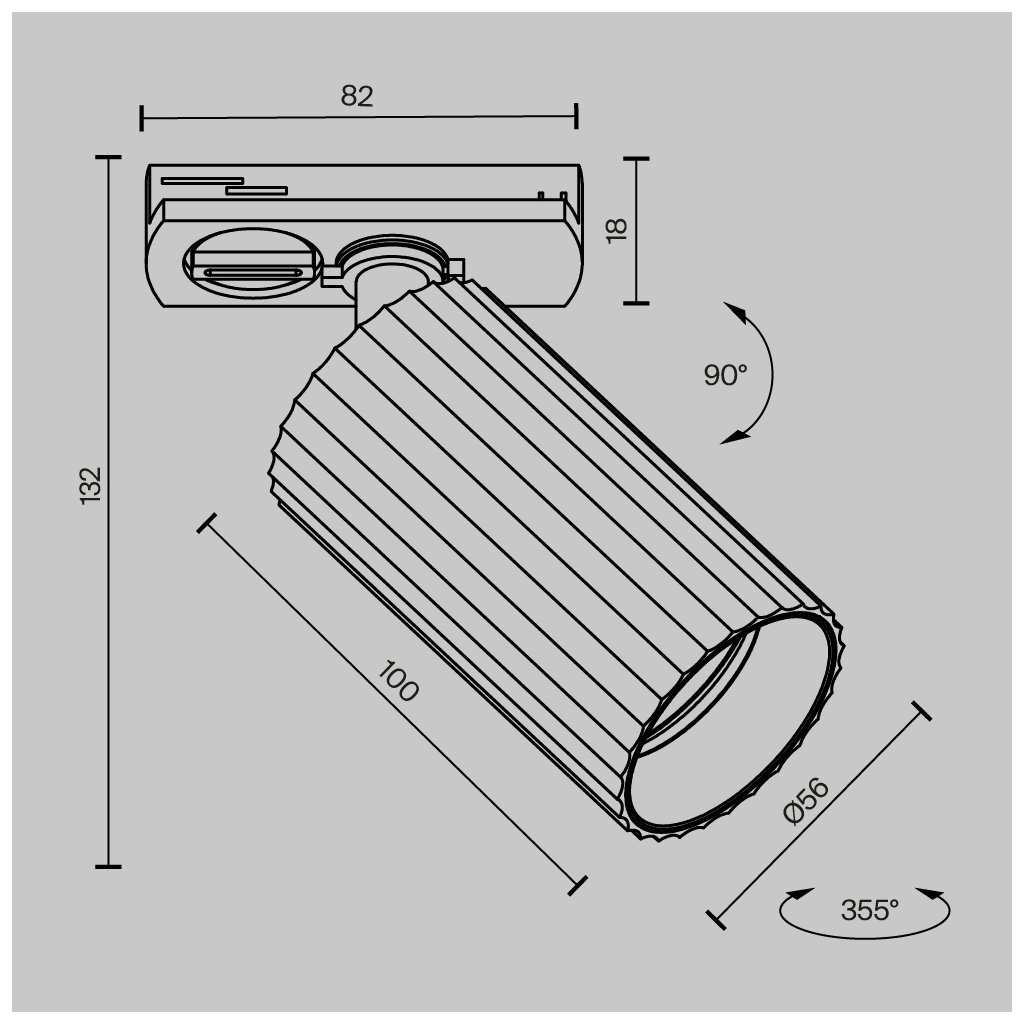 Rozměry hlavy svítidla jsou ø56/136 mm a celkové rozměry svítidla jsou 82/56/132 mm. (d/š/v)