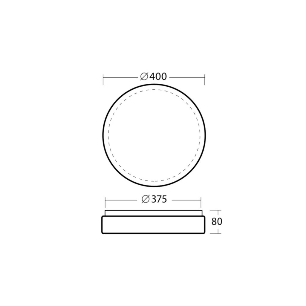 Svítidlo je dostupné ve dvou rozměrech - ø300/75 mm a ø400/80 mm.