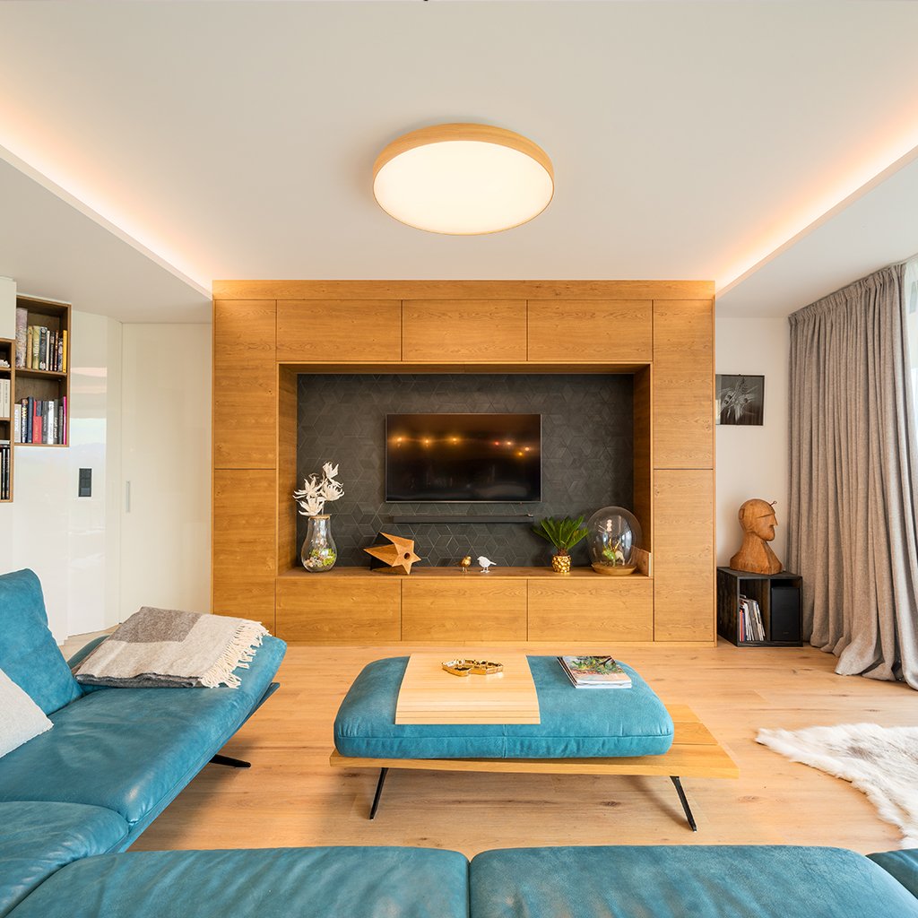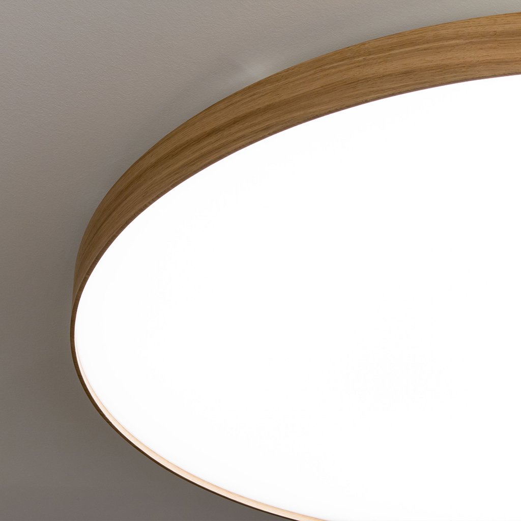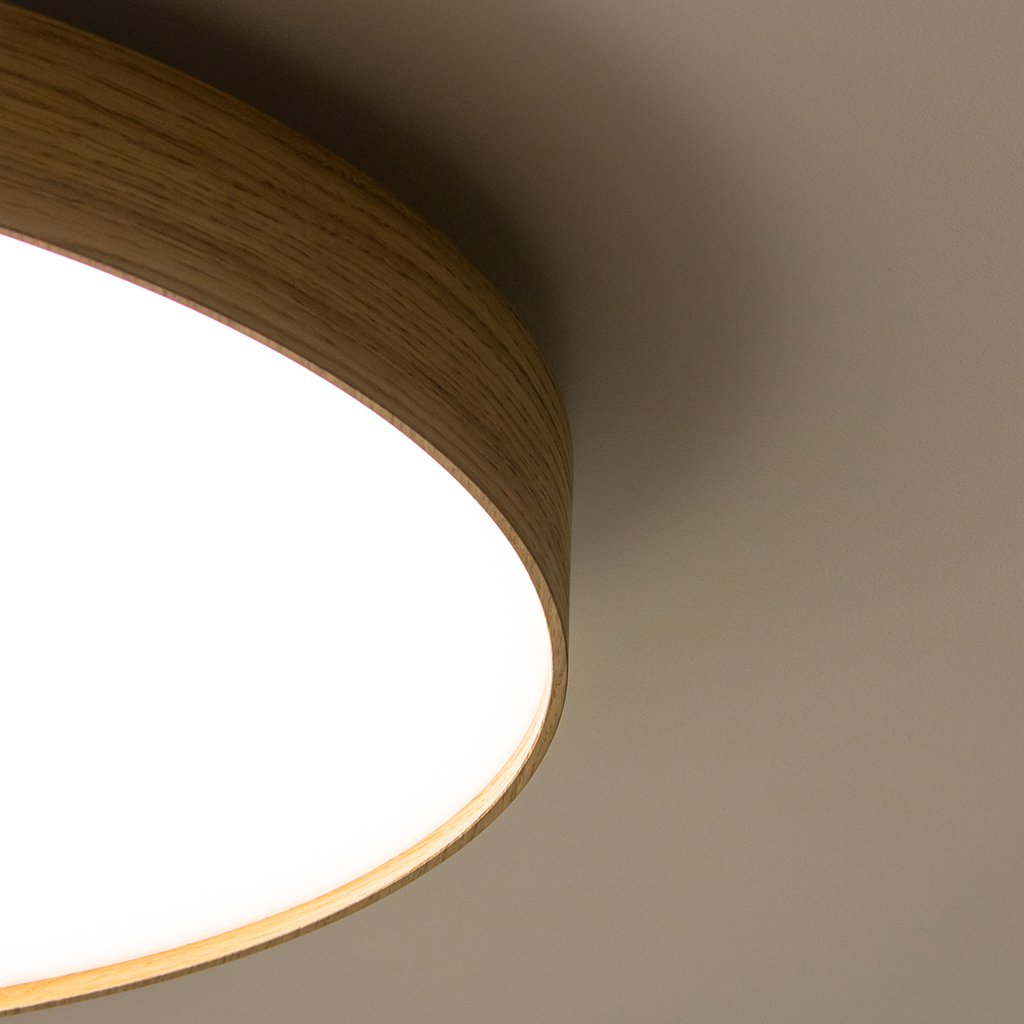 - Toto je oblíbené svítidlo našeho architekta. Přisazené dřevěné, přesto štíhlé a elegantní. Od stropu je mírně odsazené, čímž vytváří vzdušný dojem. Zútulní a „zateplí“ každý interiér. Vybraný dřevo-dekor lze za malý příplatek „domořit“ do dekoru vašeho vzorku dřeva (například podlahy či nábytku), který nám zašlete. LED technologie vysoké kvality svítí rovnoměrně a neoslňuje.