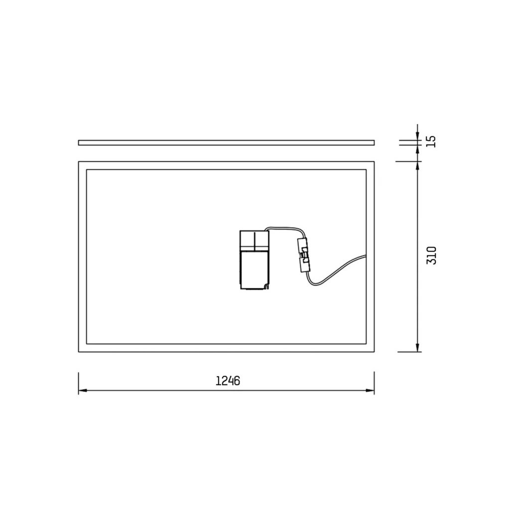 Svítidlo je dostupné ve dvou velikostech - 628/628/46 mm nebo 1251/318/45 mm. (d/š/v)