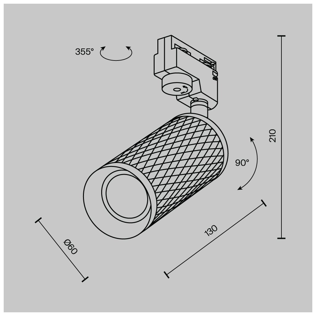 Rozměry hlavy svítidla jsou ø60/130 mm, celková výška je 210 mm.