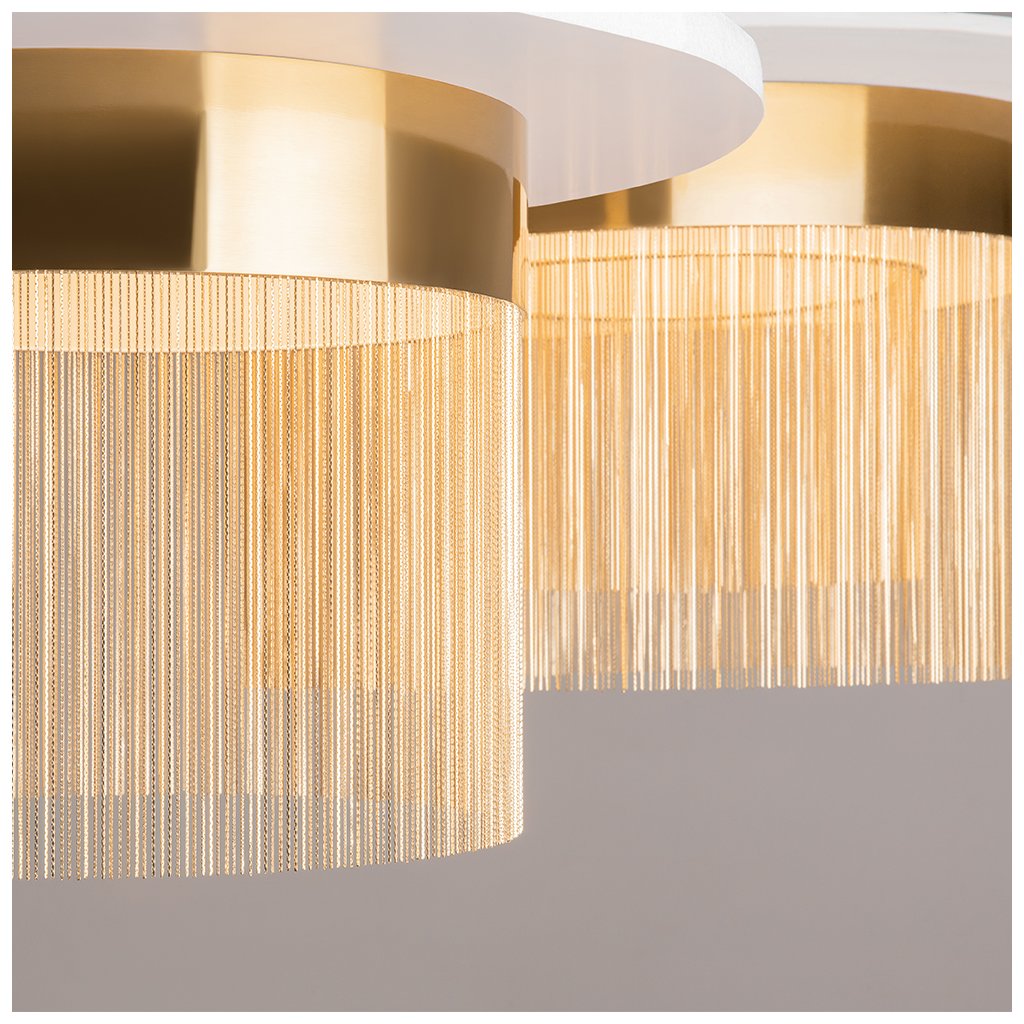 Elegantní přisazené svítidlo Imaginary Ceiling podněcuje fantazii a naplňuje prostor kreativitou. Bohaté dekorativní řetězy připomínají luxusní šperky, zatímco minimalistická silueta svítidla vyvažuje tento odvážný design. Jemné a teplé vyzařované světlo podporuje sofistikovanost svítidla a ještě více posiluje kouzelný dojem tím, jak se odráží o dlouhé řetězy a vytváří hravé odlesky a třpytivé efekty.