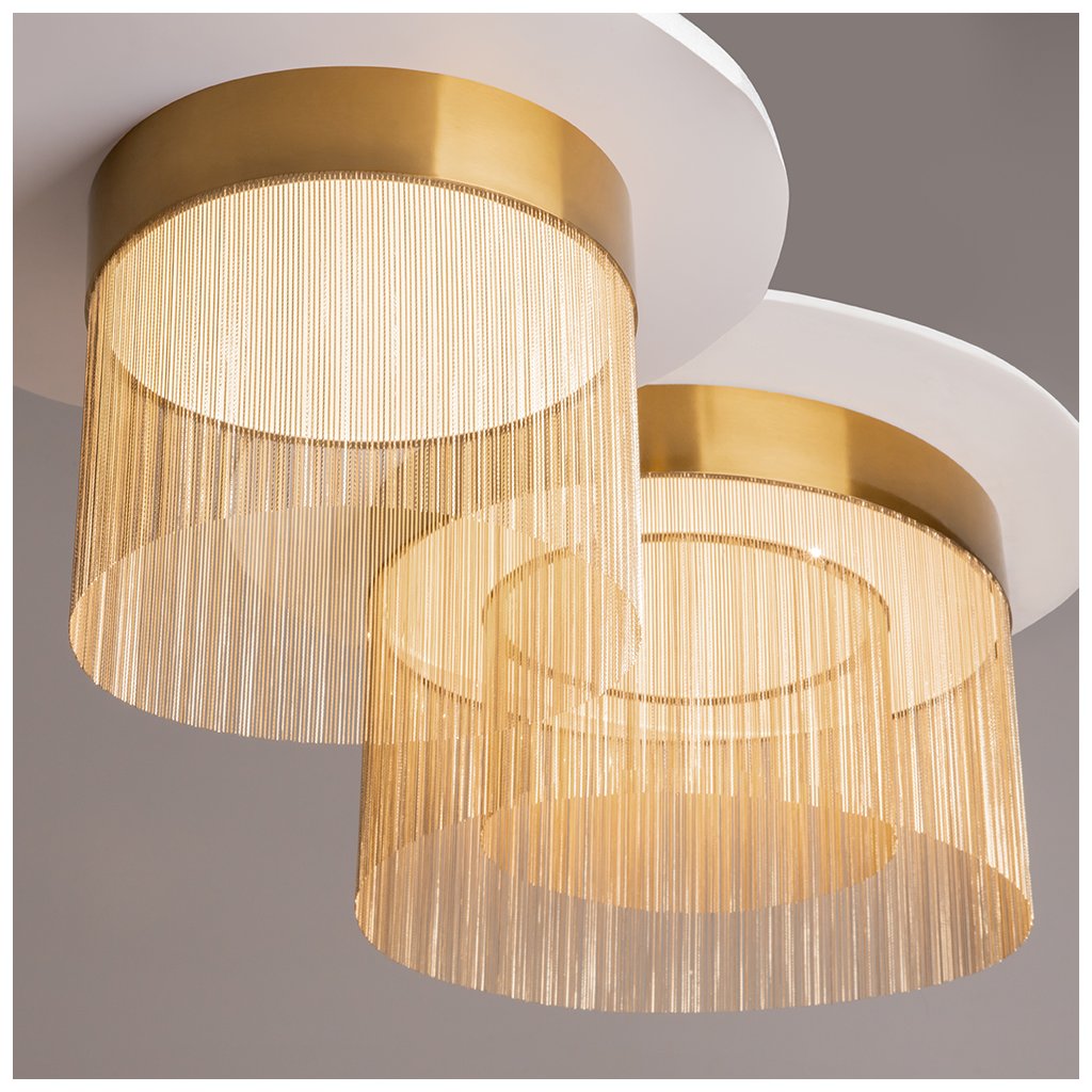 - Elegantní přisazené svítidlo Imaginary Ceiling podněcuje fantazii a naplňuje prostor kreativitou. Bohaté dekorativní řetězy připomínají luxusní šperky, zatímco minimalistická silueta svítidla vyvažuje tento odvážný design. Jemné a teplé vyzařované světlo podporuje sofistikovanost svítidla a ještě více posiluje kouzelný dojem tím, jak se odráží o dlouhé řetězy a vytváří hravé odlesky a třpytivé efekty.