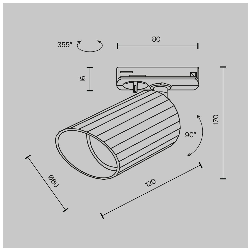 Rozměry hlavy reflektoru jsou ø60/120 mm a celkové rozměry svítidla jsou 80/60/170 mm. (d/š/v)