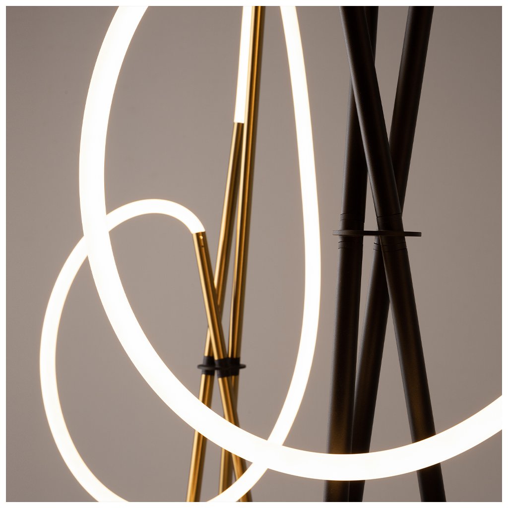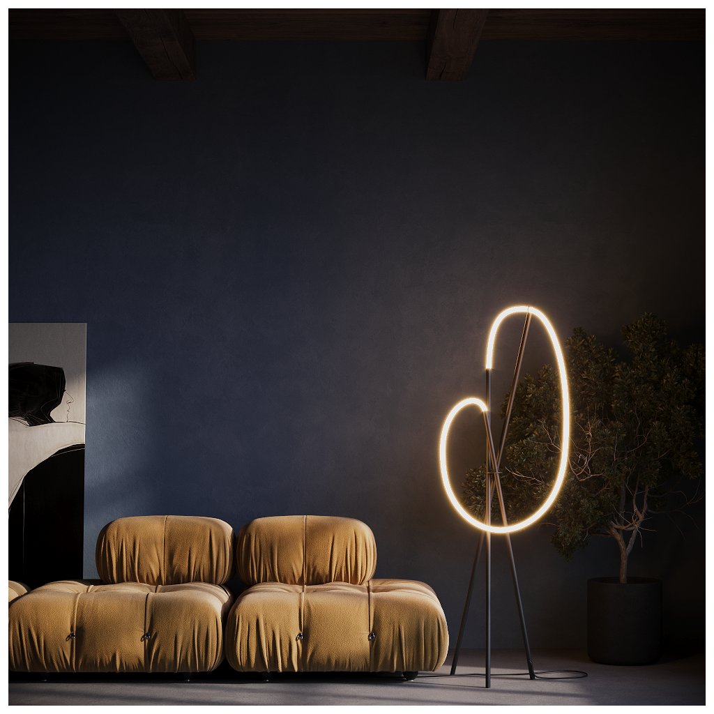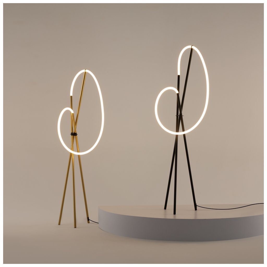 Moderní stojací lampa Crochet je spojením kulturního dědictví, rafinovaného designu a funkční elegance. Kovový rám lampy připomíná pletací jehlice a flexibilní silikonový difuzor napodobuje vlnu při háčkování. Tato lampa tak vypráví příběh starodávného řemesla, vnáší do moderních domácností nádech tradice a vytváří příjemnou atmosféru. Jedinečná lampa Crochet si zachovává minimalistickou estetiku a zároveň přináší inovativní design.