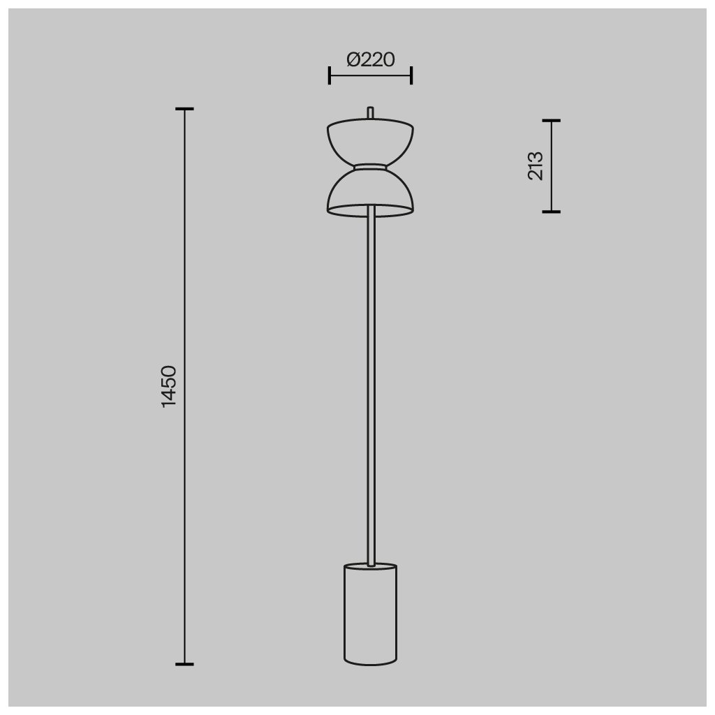 Rozměry svítidla jsou ø220/1450 mm.