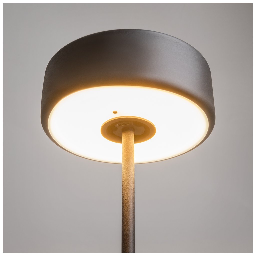 V hlavě svítidla je umístěna elektronika, dotykový stmívač a nabíjecí konektor. (Nabíjecí kabel součástí balení.)