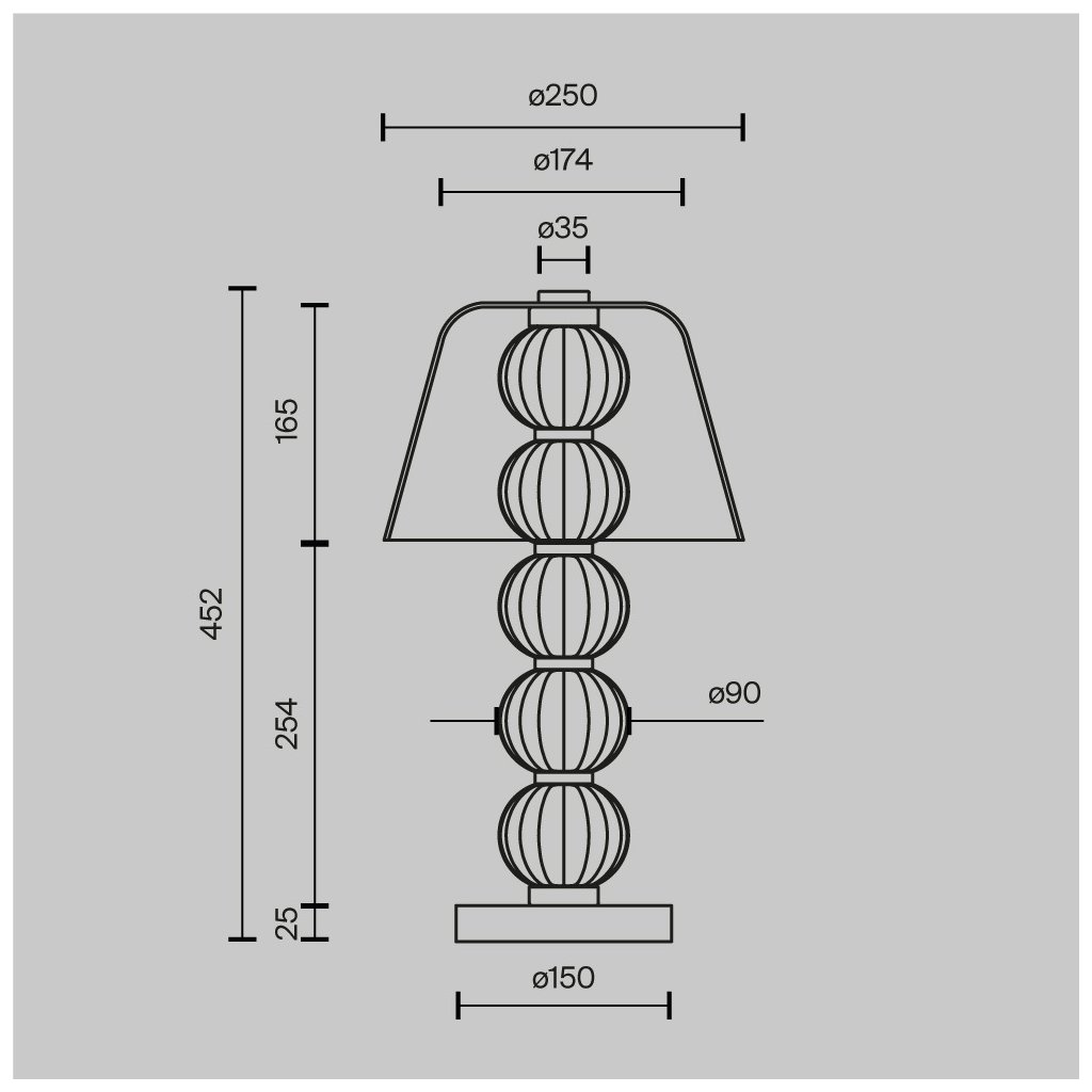 Rozměry svítidla jsou ø250/452 mm.