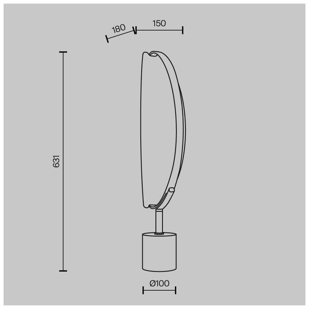 Rozměry svítidla jsou 180/150/631 mm. (d/š/v)