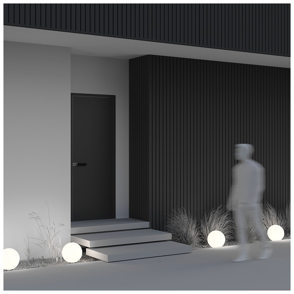 Moderní venkovní svítidlo Erda Floor ve tvaru koule vhodné do mnoha různých venkovních prostorů. Díky minimalistickému nadčasovému designu perfektně zapadne do všech obytných i komerčních prostorů. Toto svítidlo se často používá pro nasvícení zahradních a příjezdových cest, venkovních koridorů, teras či zahrad.
