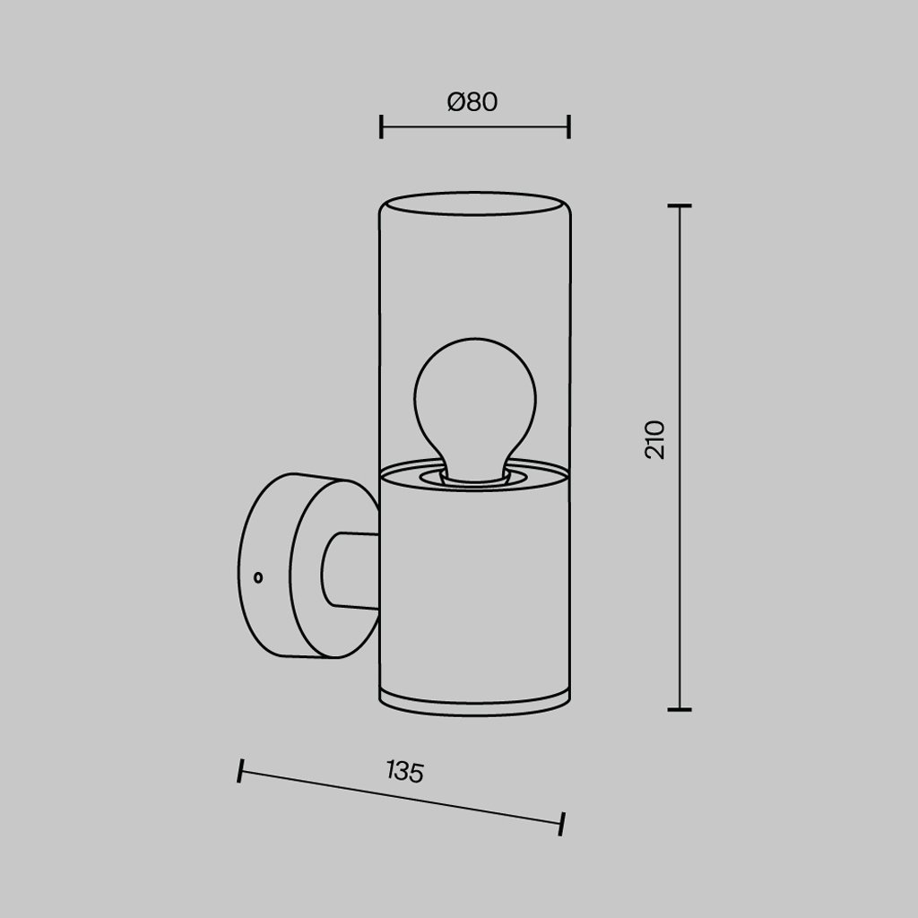 Rozměry svítidla jsou ø80/210 mm, šířka svítidla je 135 mm.