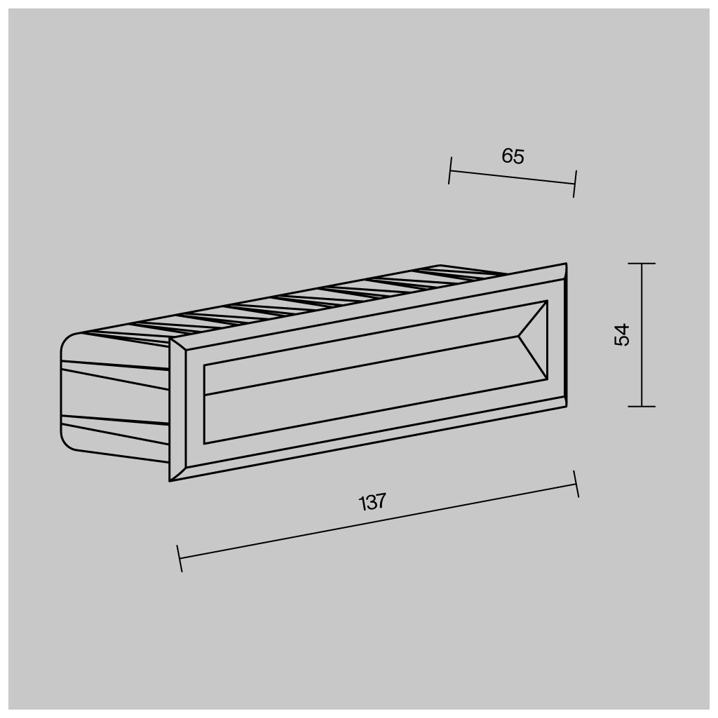 Svítidlo je dostupné ve dvou velikostech - 84/54/65 mm a 137/54/65 mm (d/v/h), minimální hloubka pro vestavbu je 70 mm.