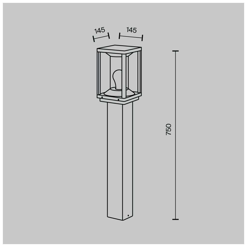 Svítidlo je dostupné ve dvou velikostech - 145/145/750 mm a 145/145/2200 mm. (d/š/v)