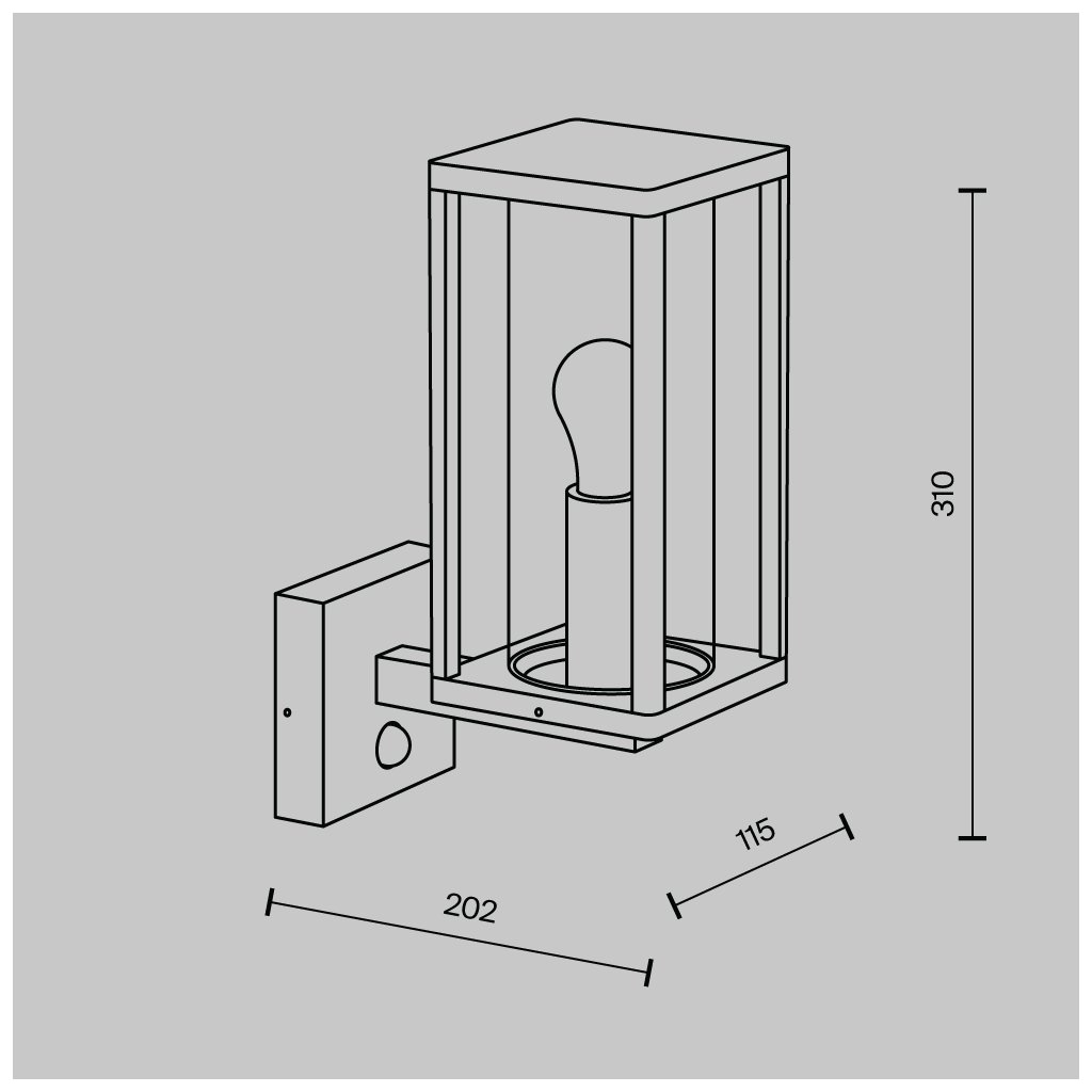Rozměry svítidla jsou 202/115/310 mm. (d/š/v)
