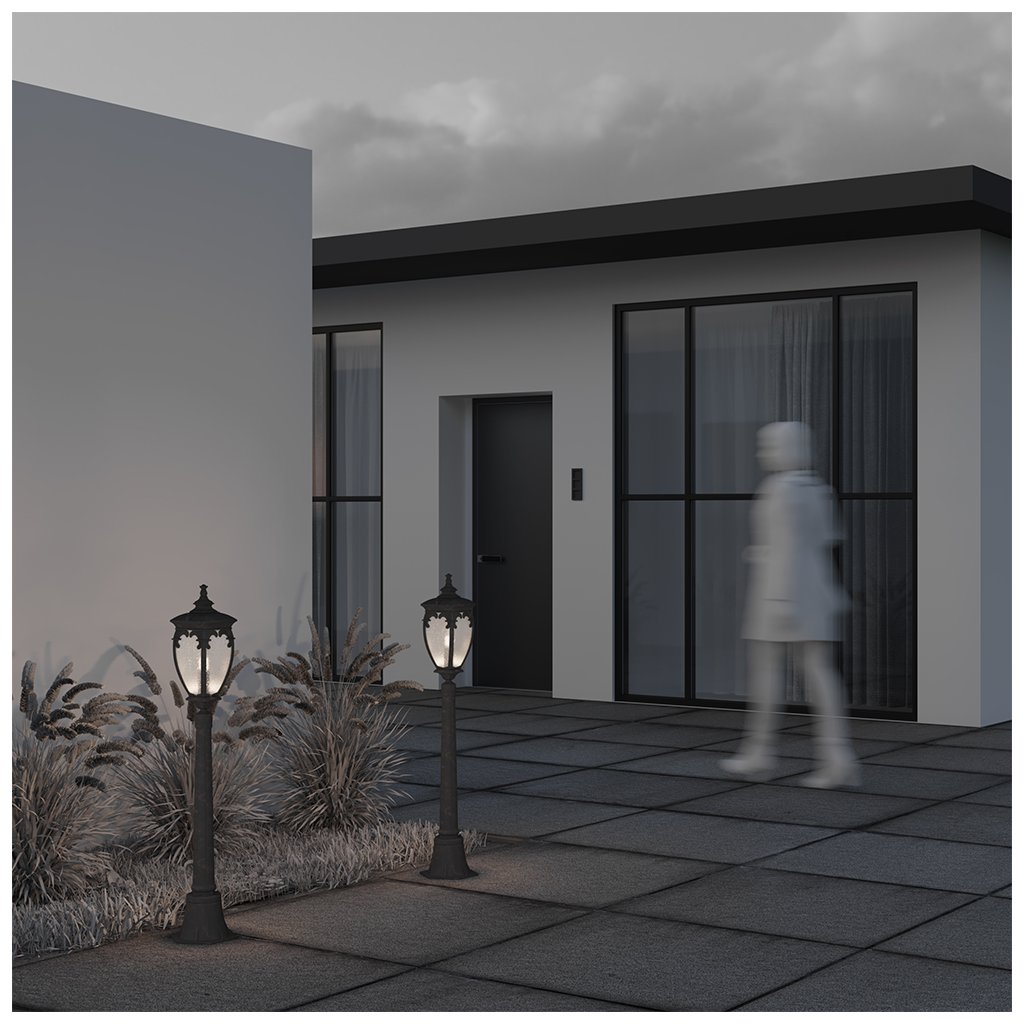 Starožitné venkovní zemní svítidlo Fleur Floor Single vhodné do mnoha různých venkovních prostorů. Díky retro designu a vysoké odolnosti proti korozi a teplotním výkyvům perfektně zapadne jak do obytných, tak i do komerčních prostorů. Dekorativní technika PULEGOSO dodává sklu svítidla nádech sofistikovanosti díky efektu vzduchových bublin uvnitř skla. Toto svítidlo se často používá pro osvětlení zahradních a příjezdových cest, venkovních koridorů, teras či zahrad.