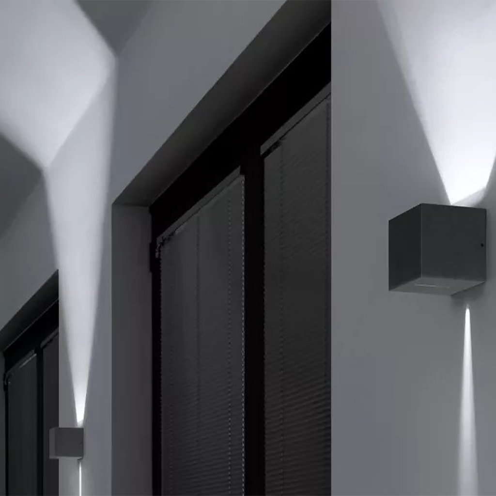 Moderní krychlové svítidlo s ostrými hranami a nepřímým svícením nahoru i dolů po stěně vhodné do mnoha různých venkovních i vnitřních prostorů. Díky skvělým světelným vlastnostem a minimalistickému nadčasovému designu perfektně zapadne jak do obytných, tak i do komerčních prostorů. Toto svítidlo se často používá pro osvětlení kanceláří, vstupních prostorů a chodeb, ale i venkovních koridorů, omítek a teras.