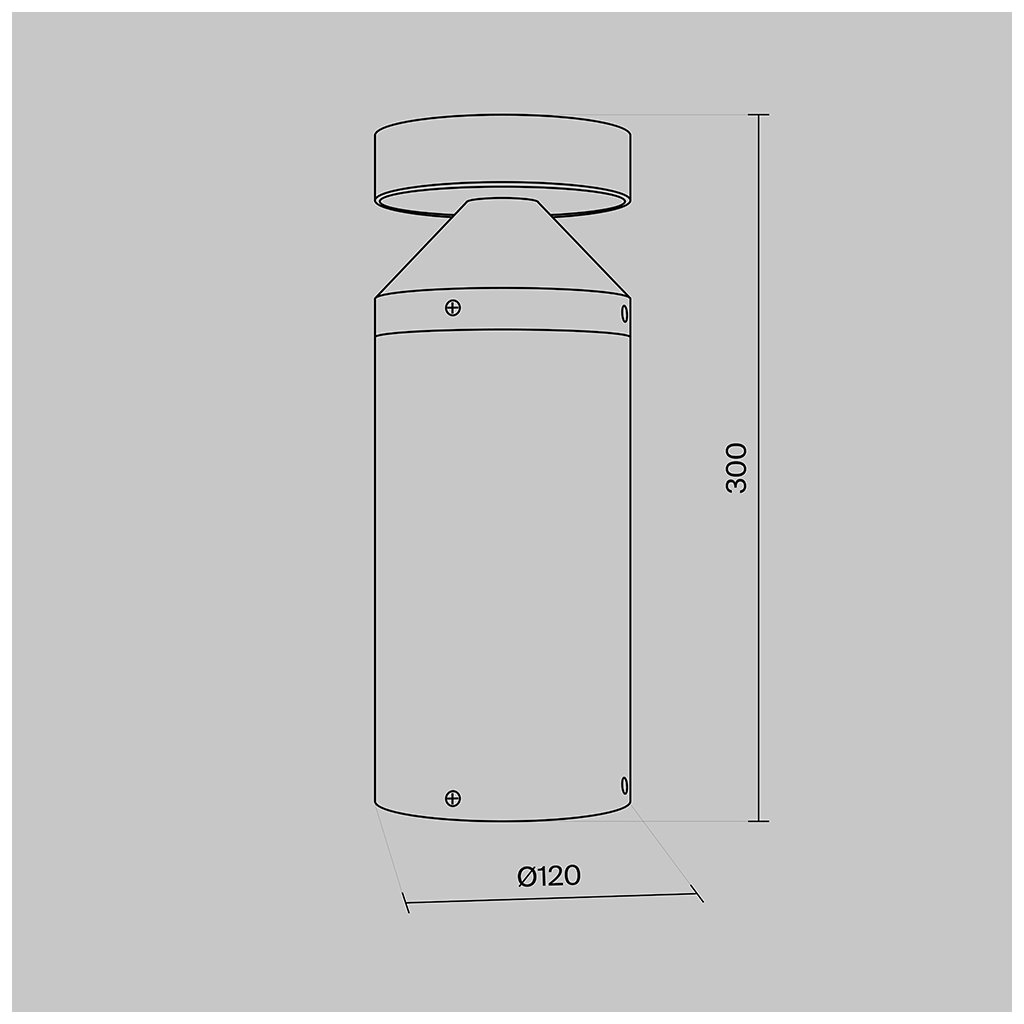 Svítidlo je dostupné ve dvou rozměrech: ø120/300 mm a ø120/800 mm.