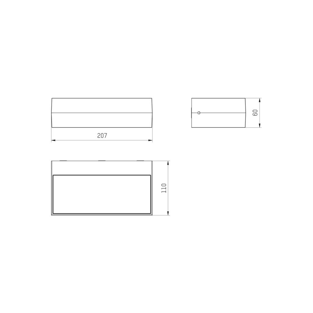 Rozměry svítidla jsou 207/110/60 mm. (d/š/v)