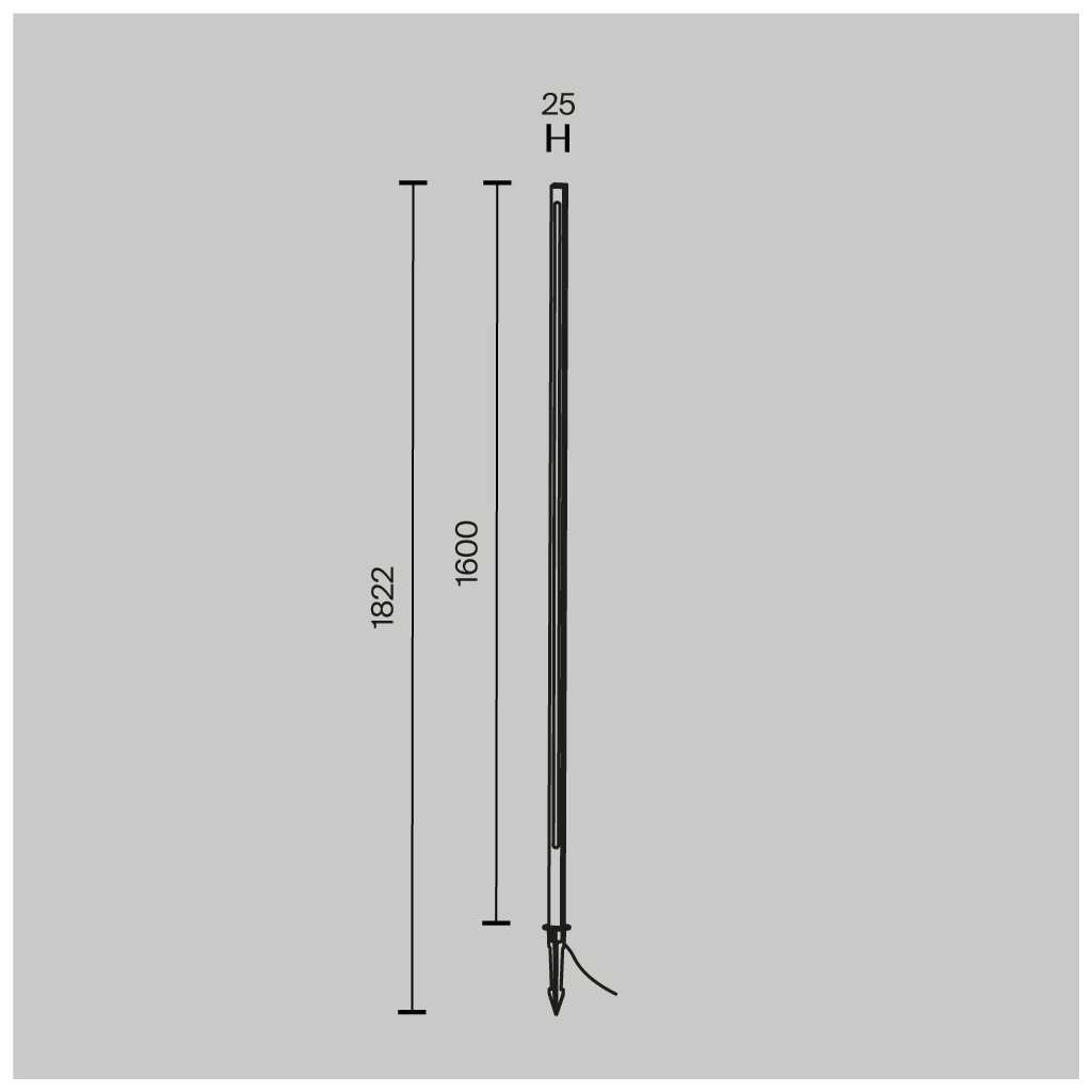 Svítidlo je dostupné ve třech rozměrech: 25/25/800 mm, 25/25/1200 mm a 25/25/1600 mm. (d/š/v)