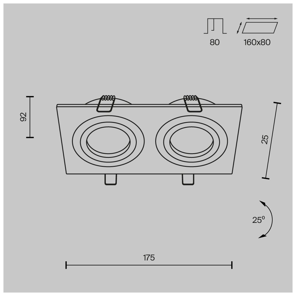 Rozměry svítidla jsou 175/92/25 mm (d/š/h), minimální výška nad podhledem je 80 mm.