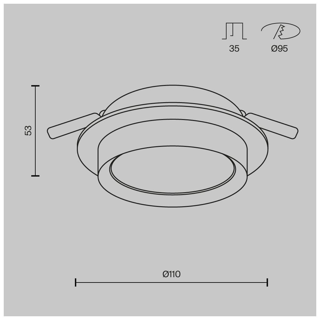 Rozměry svítidla jsou ø110/53 mm, minimální výška nad podhledem je 60 mm.