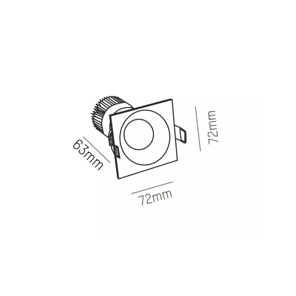 Rozměry svítidla jsou 72/72/63, minimální výška nad podhledem je 94 mm.