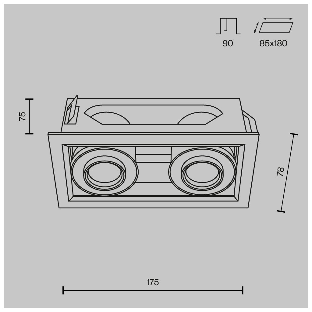 Rozměry svítidla jsou 175/78/75 mm, minimální výška nad podhledem je 80 mm.