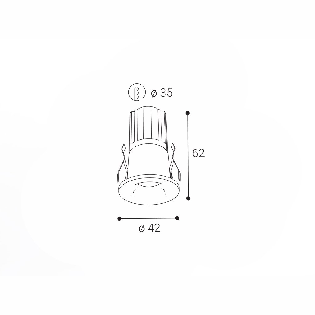 Rozměry svítidla jsou ø42/62 mm.