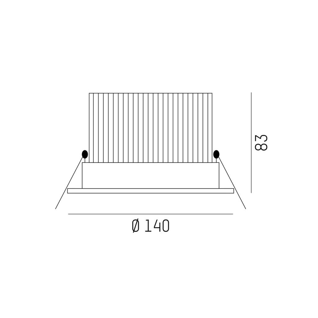 Svítidlo je dostupné ve čtyřech velikostech - ø105/75 mm, ø140/83 mm, ø165/83 mm a ø230/110 mm; minimální výška nad podhledem je 140 mm.